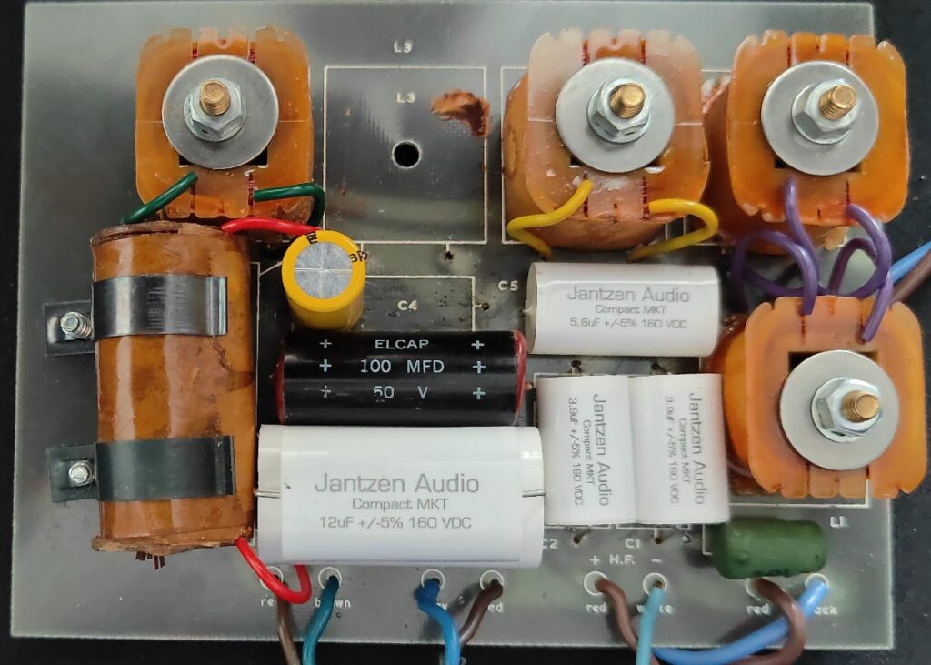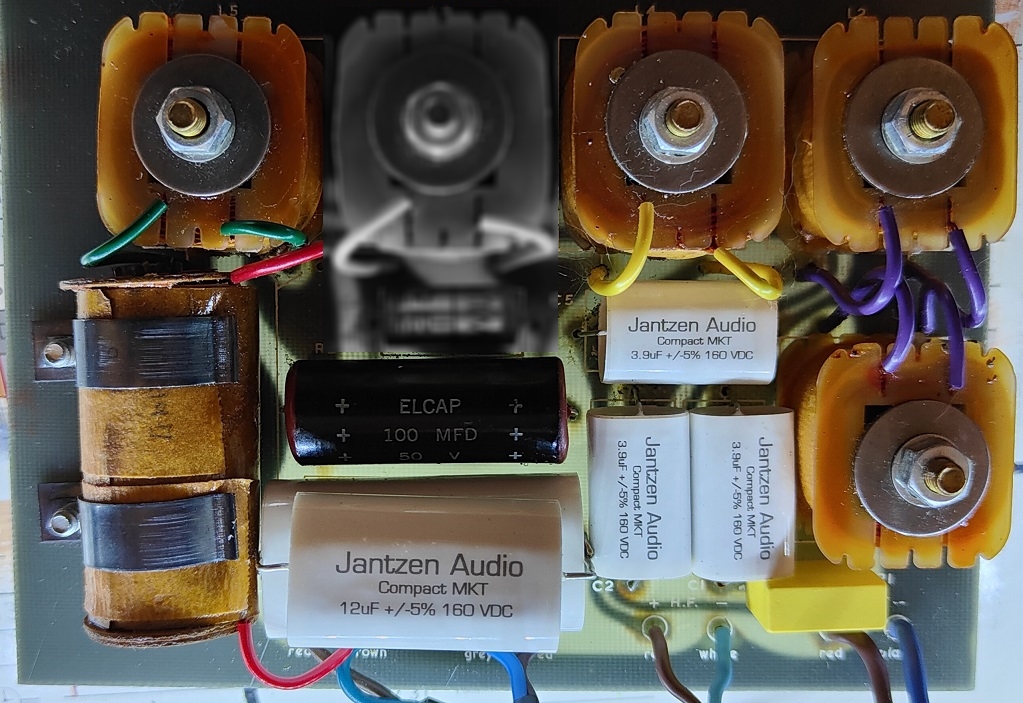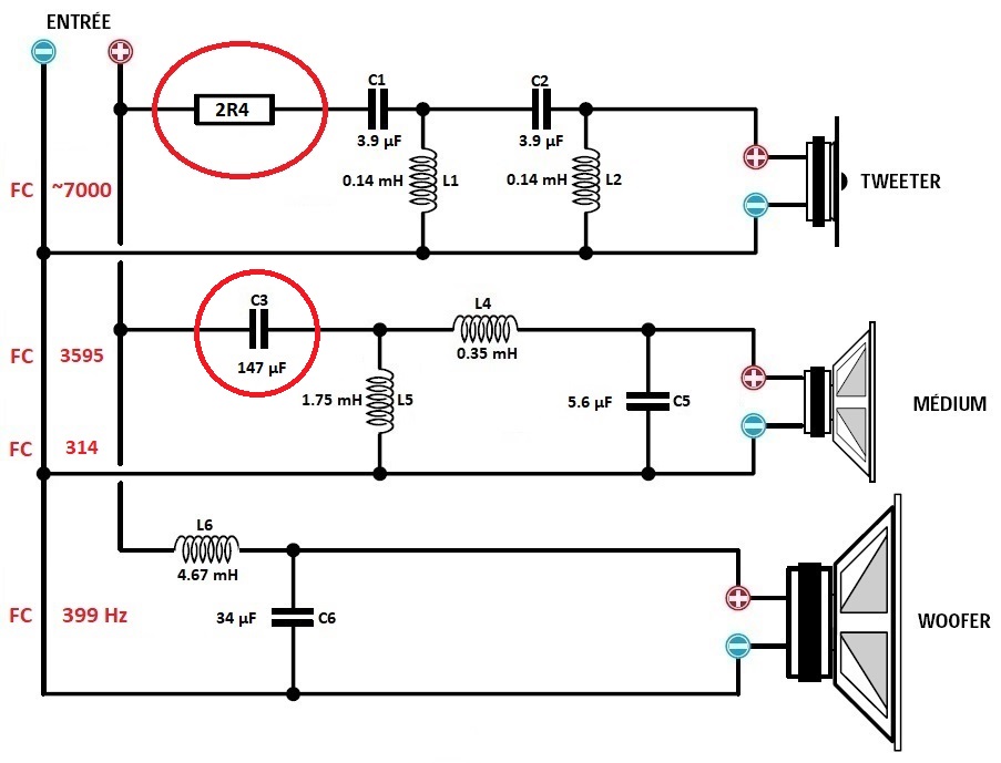 - Tweeter : pas de modification du filtre à 24 dB seulement le remplacement des condensateurs de 4 µF par des MKT de 3.9 µF.