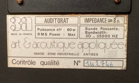 Le site 3A Art & Acoustique Appliquée (1972 – 1985) permet de trouver une mine de renseignements. Surtout un modèle 3A 380 identique à la plaque signalétique.