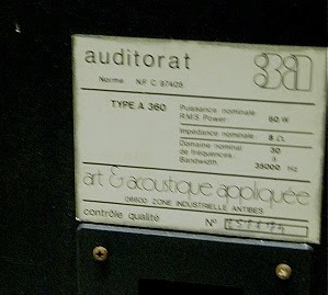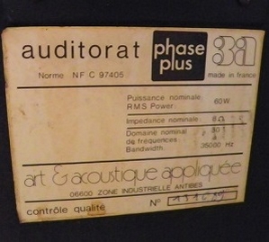 Mon modèle est bien une Série 300 – 380 (1982) car les Auditorat ont cette appellation sur leur plaque signalétique et selon leurs caractéristiques le HP grave W80 est remplacé par un W60 voir un W150. Coté filtrage il semblerai qu’il n’y ai pas de différence selon le site.