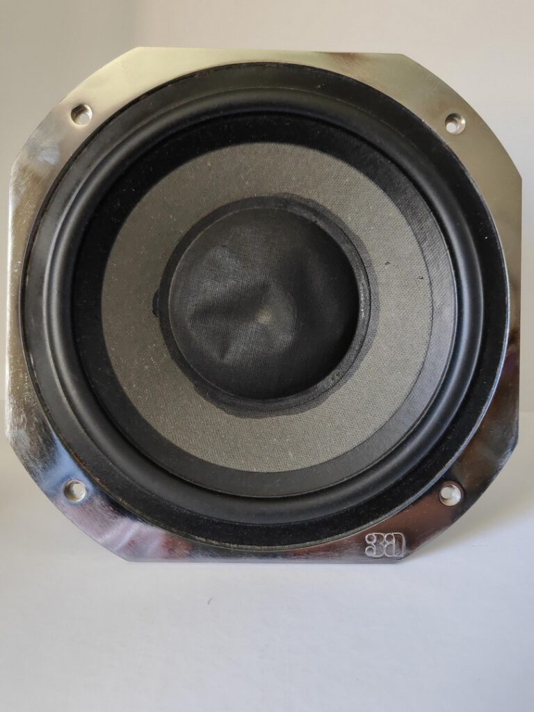 Comme on peut si attendre pour l’époque, une simple mousse (encore collée dans la charge close, nous prouve son authenticité) assure l’amortissement dans l’enceinte et de la charge close du médium, assurée par un bol en aluminium.