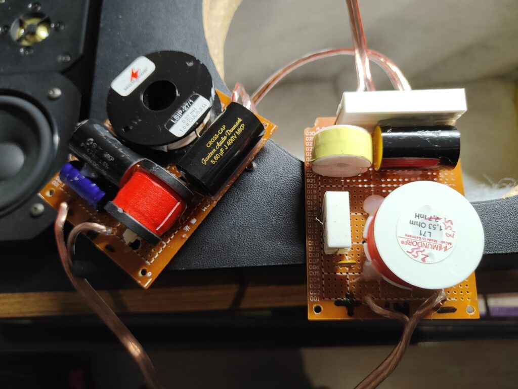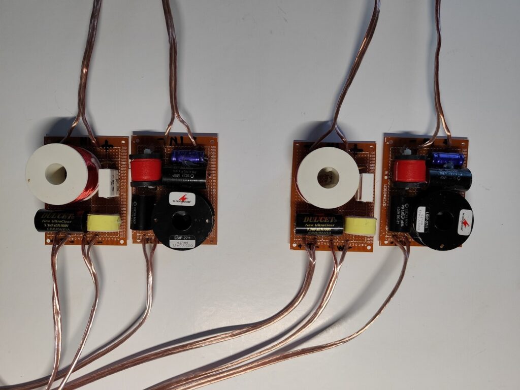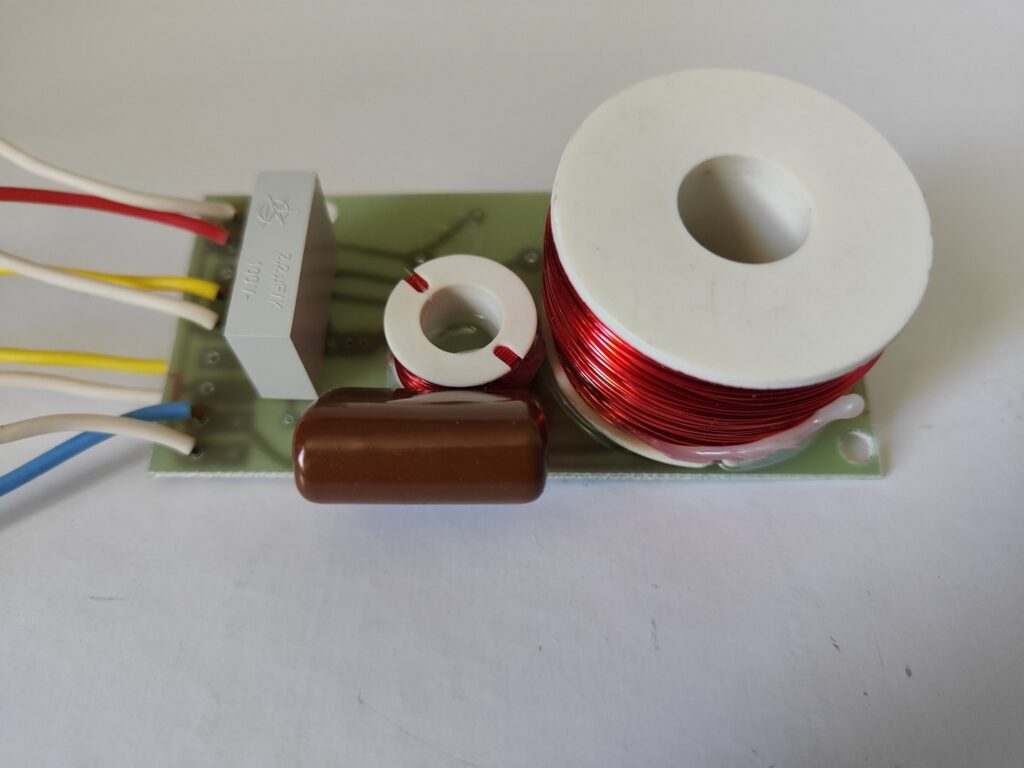 Je vais affiner le filtrage médium/aigus et revoir le grave pour le rendre un peu plus présent. Avec les nouvelles valeurs, je m’approche dangereusement de la limite du tweeter, je laisse donc la résistance 1R2 en place par sécurité. Le test des filtres revisités ici.