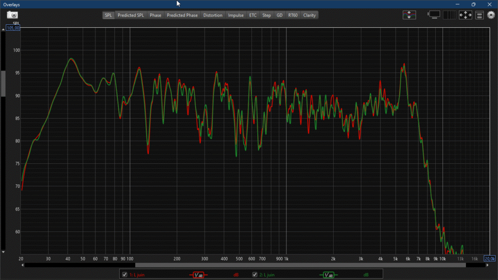 Je vais effectuer plusieurs tests du tweeter en modifiant les réglages dans REW sans vraiment avoir de différence significative.