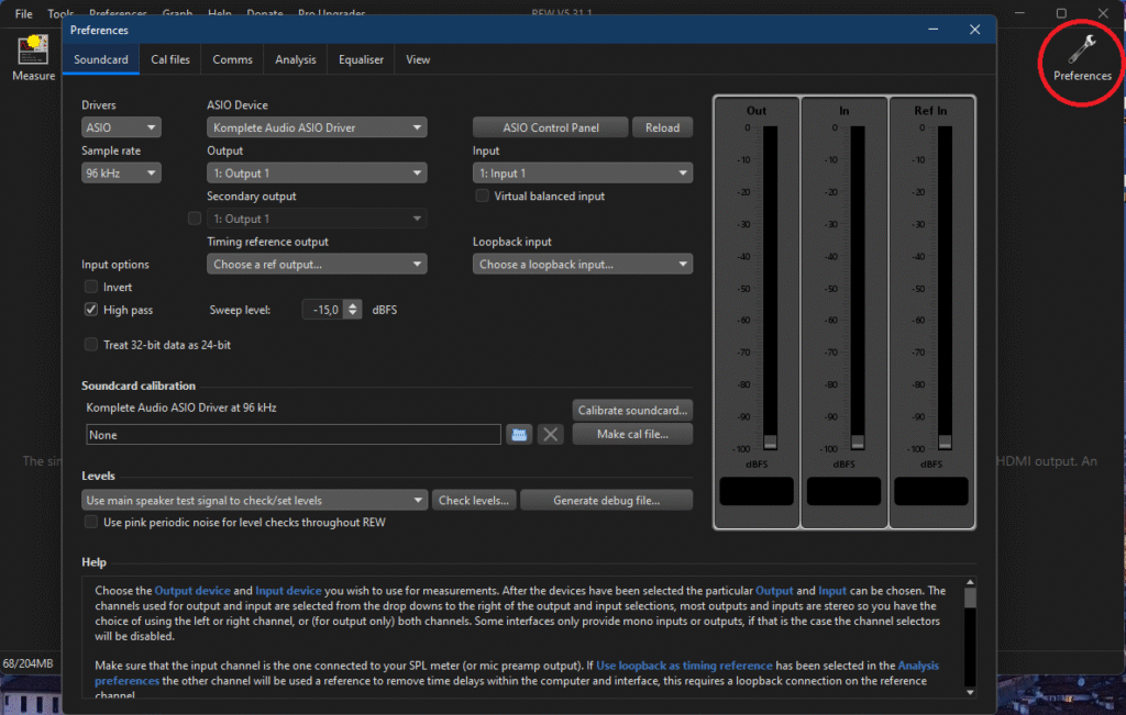 L’installation, vue précédemment, se fait sans aucune difficulté, effectivement tout se passe comme prévu avec les bons câbles. Avant de faire une mesure, il faut commencer par effectuer les réglages de REW en fonction de son matériel.