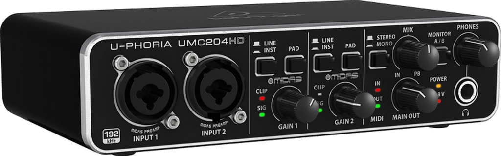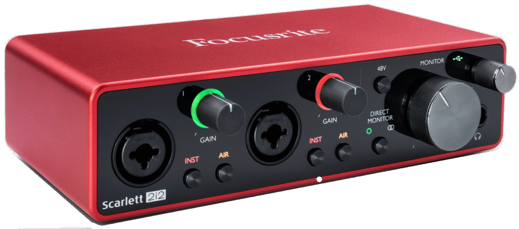 Pratique avec sa connexion USB, le prix est néanmoins un peu élevé ~150€ mais cela sera vite compensé par le fait que l’on utilisera la carte son du PC et ne nécessitera pas de câbles spécifiques.
