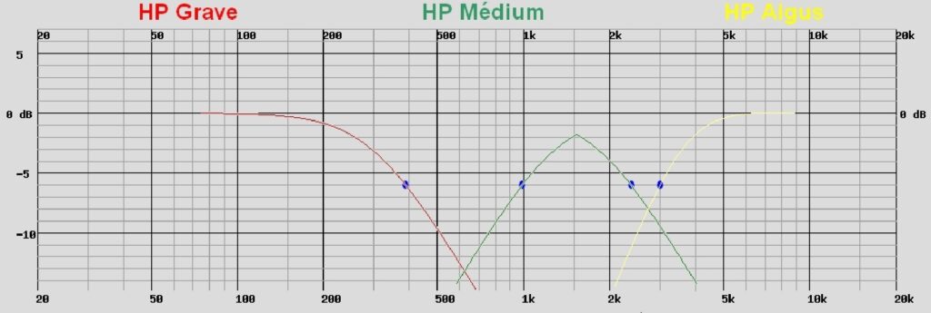 Le filtre passe haut du tweeter est assez particulier, une sorte de 18 ou 24 dB à point milieu, une première pour moi. difficile de l’analyser en détail .