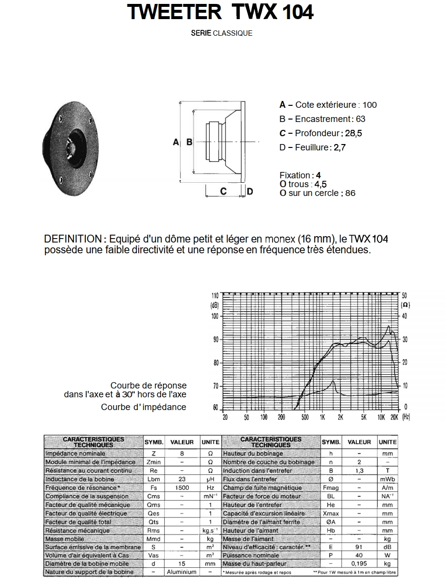 La restauration sur la 2004 l’a identifier : c’est un Siare TWK en 8 ohm.