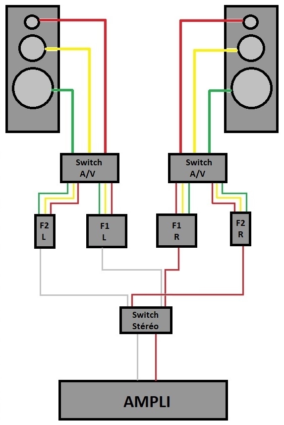 Pour ce montage, L’enceinte doit avoir une sortie indépendante pour chaque haut-parleur.