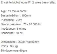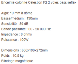 Pour positivé, les caissons de ces F2 sont de très bonne facture ainsi que le bornier arrière. Après une petite modification pour mon projet Peri F2, j’adore tellement le résultat obtenu qu’elles sont devenues mes enceintes « audiophiles », tandis que mes colonnes Triangles restent couplées au home cinéma.