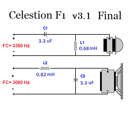 Je vais donc utiliser une FC propre au tweeter et une autre pour le bas-médium. Solution qui a bien fonctionné pour les F1.