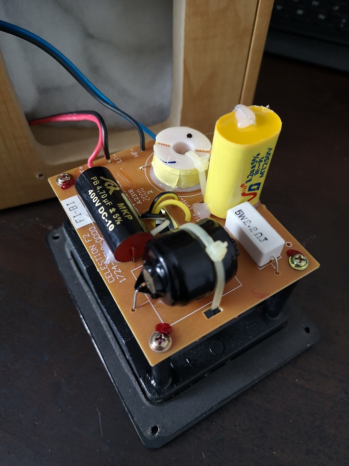 Étonnamment le son est horriblement nasillard, à l’inverse il ne semble n’y avoir que des hauts aigus trop présent avec un son métallique. La membrane à onde double en matière plastique à un rendu bien inférieur au tweeter d’origine. Je remonte donc le tweeter d’origine en espérant pouvoir en sortir quelques hauts aigus en modifiant le filtre.